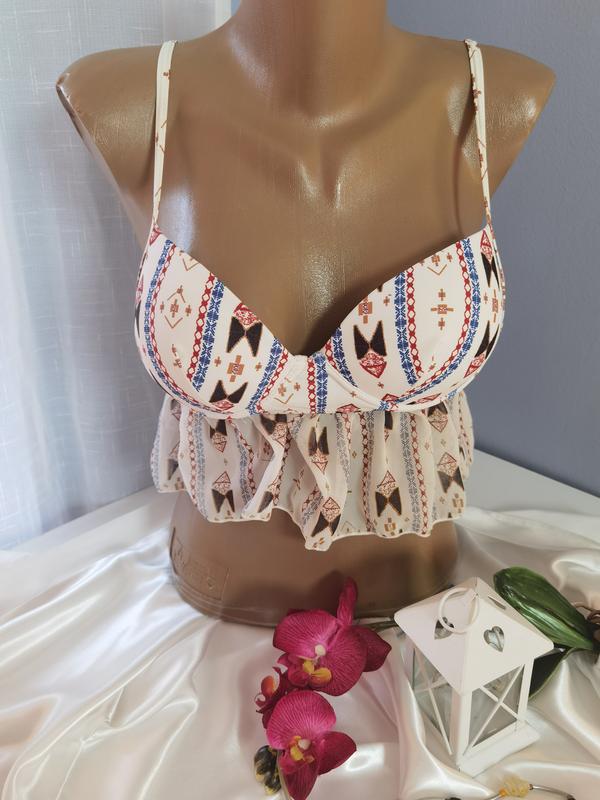 🌸Красивый стильный брендовый бюстгальтер от раздельного купальника 🌸Модель на косточках, на тонких регулируемых бретелях 🌸Чашка з пуш ап 🌸По объему спинки металл. крючок защелка 🌸Качественный комфортный в использовании 🌸Размер M 🌸Замеры на последних фото, ориентируйтесь на них