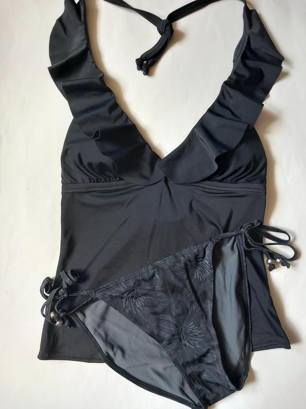 Универсальная вещь! удобный купальник танкини! подойдет как на пляжный сезон , так и для бассейна. Прекрасный купальник состоит из купальной маечки и плавок, очень удобная и практичная комбинация! комфортное использование! Эксклюзивный купальник черного цвета с красивым очаровательными воланами! элегантный женственный фасон,сидит по фигуре, топ-маечка со съемными уплотненными чашками, хорошо держит грудь образуя полное, привлекательное, соблазнительное, округлое декольте! сплошная широкая резинка под грудью поэтому отлично и идеально фиксирует и обеспечивает хороший уровень поддержки! на чашку А_В (1-2 рр груди) размер маечки между 6 и 8/хс-с/наш 40-42/ замеры- пог 33/под грудью 31/ пот 31,5/ длина по центру 28/ высота бокового шва 25/ плавки удобная и практичная форма слип, на теле сидят соблазнительно, по бокам на завязках, средняя посадка. размер 8-10/с-м/наш 42-44 замеры- пояс 31-35/ посадка 22,5/ СТОК НОВЫЙ с защитной наклейкой на ластовице. бренд одинаковый аналогичен. ВСЕ КУПАЛЬНИКИ ФИРМЕННЫЕ И КАЧЕСТВЕННЫЕ! НЕ РАСТЯГИВАТЬСЯ,НЕ ЛИНЯЮТ, НЕ ТЕРЯЮТ СВОЙ ВНЕШНИЙ ВИД ! НОСЯТСЯ ОЧЕНЬ ДОЛГО! смотрите все мои другие товары. предлагаю фирменное белье и купальники мировых европейских брендов! также большой ассортимент кошельков и картхолдеров из натуральной кожи, сумки, косметички и поясные сумки