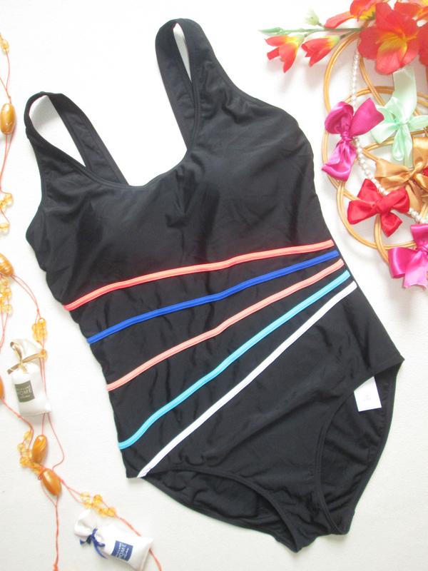 Шикарный слитный купальник чёрный с контрастными полосками george 🍒🍹🍒