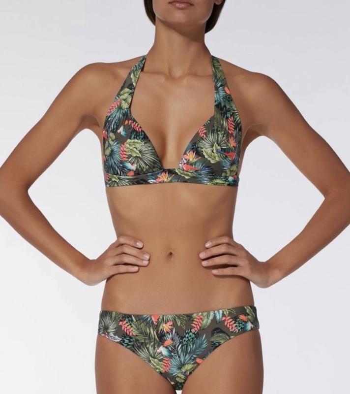 В отличном состоянии, состояние нового. Оригинал. Стильный купальник(9% полиамида, 78% полиэстера, 13% эластана). Лиф с жесткой поролоновой чашкой, объём 70/75B/C,сзади лиф регулируется по объёму,ПОБ 44см-46см.