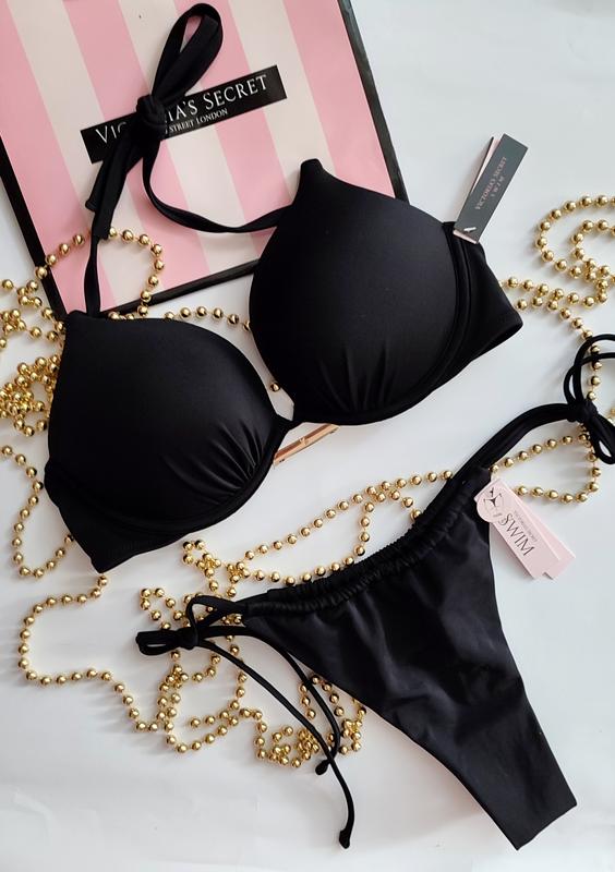 Victoria's secret original 32В/70В 36/80В ПЛАВОЧКИ ВМЕСТИЕЕ РАЗНЫЕ xs, s m l а также другие варианты 🌸🌸🌸 не забудьте подписаться, проходят акции и скидки) 💕 в свою очередь подписчикам гарантированы бонусы) Самый эффективный купальник Victoria’s Secret из эксклюзивной коллекции Bombshell из итальянской ткани, лиф с двойным пуш-ап эффектом для максимального подъема, украшенный золотой фурнитурой. ☀️ Верх Strappy Add-2-Cups Push-up Halter Top Сногсшибательный бюстгалтер из пуш-ап чашечкам, придающих 2 размера, на косточках. На спине регулируемая застежка золотого цвета. Бретели завязываются на шее. Декорирован фирменным золотистым элементом в центре лифа. Цвет черный / Black (093) / соответствует фото