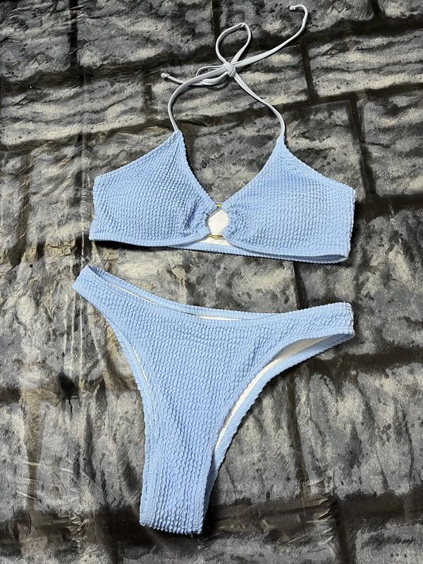 Голубой купальник из жатой ткани В идеальном состоянии, без дефектов Размер С Трусики средней посадки, купальник застегивается на шнуровку через шею За подробицями в лс!