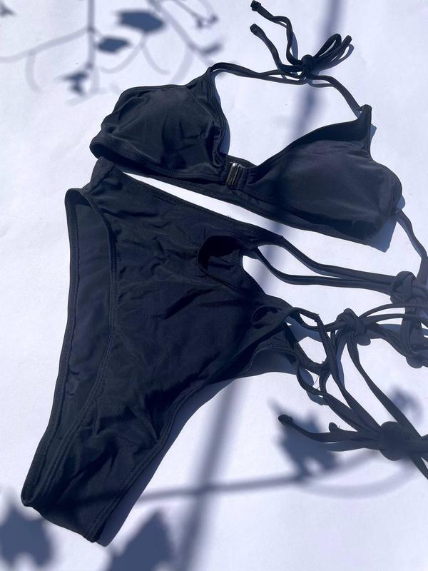 Купальник с высокими трусиками лиф с застежкой спереди, высокие плавки с завязками