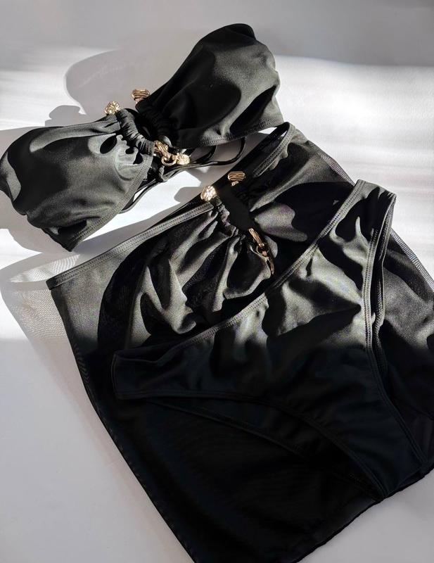 ❣️Купальник 3в1: лиф бандо с металлическим кольцом, трусики и юбка из сетки, цвета черный и белый, размеры S, M Есть наложенный платеж по предоплате