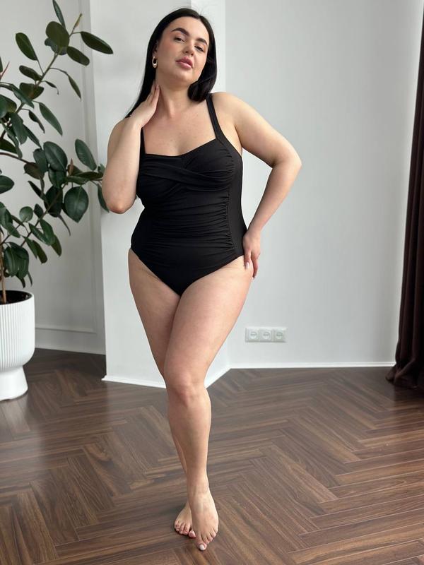 SW3614 Твій must-have купальник на літо🏖️ Чорний цільний купальник із тканини жатка — це про комфорт, підтримку та впевненість у собі👍 • Стильне драпірування в зоні декольте та талії, яке візуально струнить • Тканина «жатка» тримає форму та не просвічує, навіть після намокання • Поясна зона з легкою корекцією — м’яко “тримає” животик • Чашки поролонові без кісточок, із м’якою підтримкою • Широкі бретелі для надійної фіксації без тиску на плечі • Ідеально для фігур plus size 📍Доступні розміри: XL-5XL XL: груди 104-112, стегна 107-114 2XL: груди 110-118, стегна 114-122 4XL: груди 123-132, стегна 132-140 5XL: груди 131-140, стегна 140-150 Замовлення можна оформити: - по повній оплаті на картку; - безпечною угодою від Шафи; - накладним платежем по мінімальній передплаті 150 грн. Швидка відправка 1-2 дні.💌