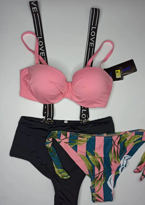 Купальник трансформер портупея ремни двое плавок Sisianna Идет на наш на 42 44 46 48 50 размер Эффектный купальник - трансформер с дополнительными плавками, выглядит очень броско и нестандартно. Очень необычный стильный купальник - трансформер незаменим для фотосессий! Купальник 3 в 1, если хотите, можно носить по очереди разные варианты. Высокие плавки с завышенным бедром. К ним пристегиваются спереди и сзади широкие ремни с надписями. Ремни можно снимать и носить высокие плавки отдельно. На плавках сзади небольшая сборка. В комплекте дополнительные плавки бразильяно невысокой посадки, на завязках. Пушап небольшой вшитый. Чашечки на косточках, хорошо собирают и поддерживают грудь. Обхват под грудью на завязках. Бретели регулируются по длине, можно их снимать.