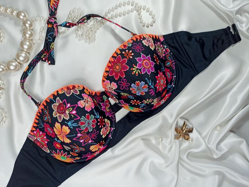 Предлагаю ЭФФЕКТНЫЙ лиф верх купальника в невероятный цветочный принт имитирующий вышивку от GEORGE. Размер 80E/F - 36E/F. Длина пояса бюстгальтера бандо 76,5 см максимально тянется до 101см. Замеры чашечки: Ширина чашки от одного конца косточки до второго по прямой, включая толщину лодыжки 20 см; ширина/ глубина по ткани, без учета толщины самой косточки в спокойном состоянии 26,5см; Высота/ глубина по ткани до центра лодыжки 19,5см. длина полукола косточки 33,5см. Формованная чашка на косточке надежно приподнимает грудь, образует красивое эффектное декольте! Бретели снимаются. Модель выполнена из приятной к телу ткани европейского качества. Ткань обладает высокой износостойкостью, противостоит воздействию ультрафиолета, хлора и морской соли и быстро высыхает на теле. Изысканный НЕЙМИРОВИРНЫЙ ДУЖЕ ЦЕККАВЫЙ принт наполнит Ваш пляжный образ бескомпромиссным ШАРМОМ и привлечет всеобщее внимание! СТОК. Новый без бумажных броков.