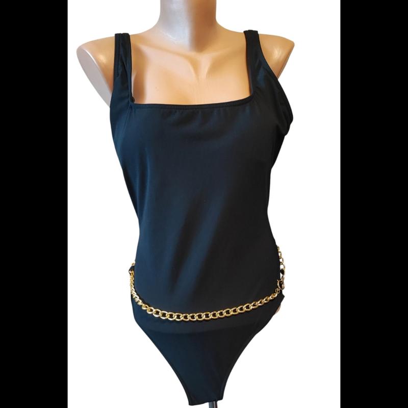 Изысканный купальник Pretty Black из коллекции MICHAEL Michael Kors. украшенный золотистым поясом-цепочкой с логотипом бренда. Модель на подкладке, выполнена из эластичного трикотажа, прилегающего к фигуре, с V-образным вырезом, мягкими чашечками со съемными вставками. Оригинал. Размер: 10. ПОГ - 44 см. ПОТ - 40 см. ПОБ - 44 см Длина бокового шва - 34 см. Материалы: Верх - 85% нейлон, 15% спандекс. Подкладка - 92% полиэстер, 8% спандекс. Страна/регион производства Шри-Ланка.