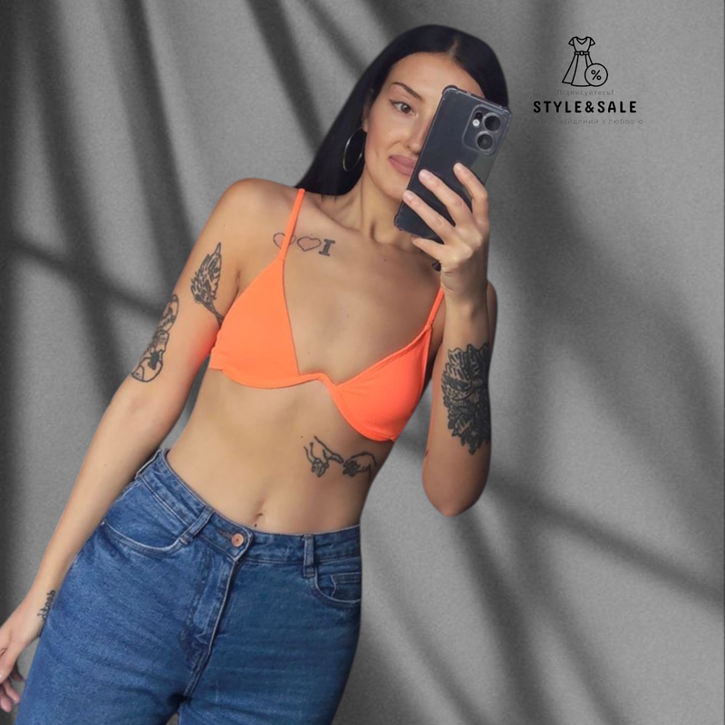 Неоновый салатовый верх купальника на тонких бретельках 🩷