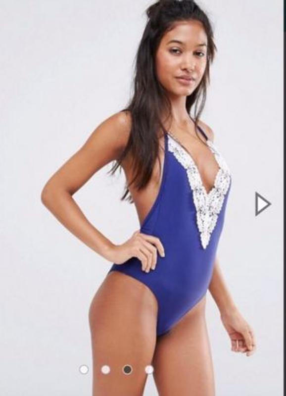 Крутой синий купальник c кружевом new look Новый но без бирки