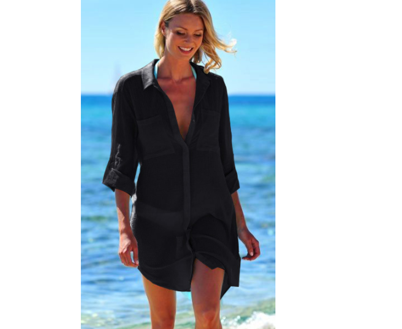 Пляжная черная рубашка на пуговицах