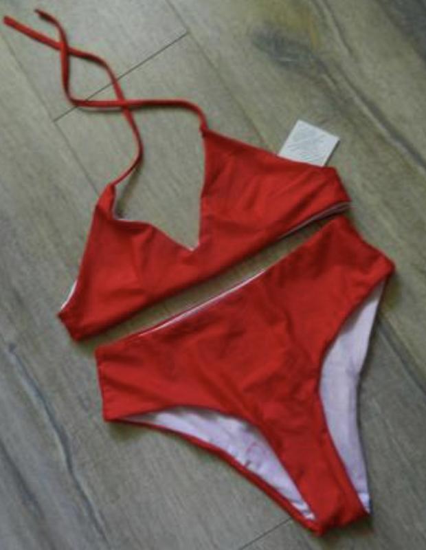 Красный раздельный купальник высокая посадка ( 10/38/s германия )❤️