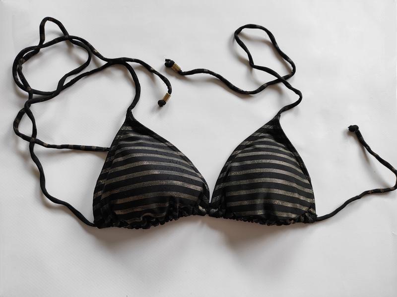 H&m верх от купальника купальник бюстгальтер лифчик в полоску черный золотой на завязках л...