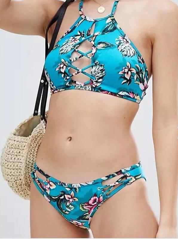 Купальник в идеальном состоянии на подкладке, красивый и яркий Чашки – съемные поролоновые Указаны размеры: бюст – UK 8 EU 36 160\84А плавки - UK 10 EU 38 165\72А Замеры верх (топ): объем – 58 см тянется до 70 см высота топа - 21 см ширина топу – 34 см Замеры плавок: объем (пояс) ПО - 37-45 см высота - 22 см Состав: внешняя ткань - 82% нейлон 18% эластан подкладка - 90% полиэфир 10% эластан