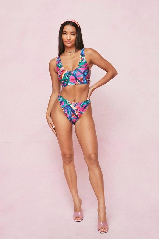 Купальник раздельный nasty gal с высокой посадкой 36 тропический принт