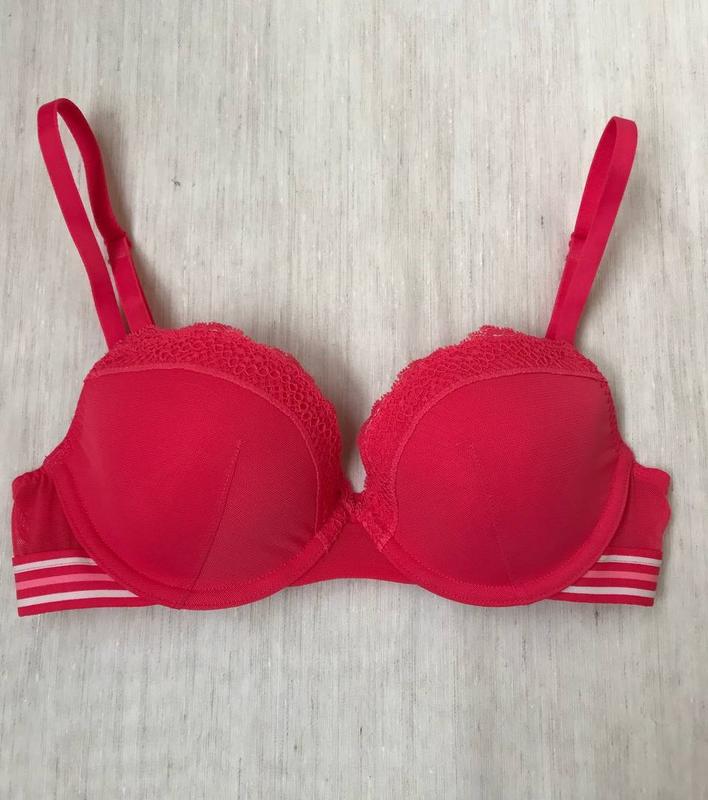 Стильний бюстгальтер коралового кольору від Marks&Spencer. Відмінна якість. Чашечка формована, на кісточках. Бюстгальтер новий, без паперової етикетки. Дефектів немає. Заміри надам за запитом