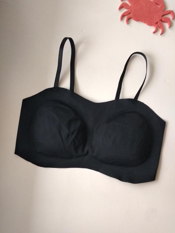 оригинальная бесшовная модель топа с ажурной спинкой, регулируемые бретели, спереди бесшовный нейлоновый трикотаж, под верхним и подкладочным слоем неподвижно "впаяны" мягкие поролоновые чашки без косточек с валиком нижне-бокового пуш-апа (снаружи всё гладко, а грудь собирается к центру) высота с бретелями ок.31см высота спереди между чашками 15см высота по центру гипюровой спинки 9см ширина под грудью 32см и тянется до 42см высота поролоновой чашки по центру ок.12см