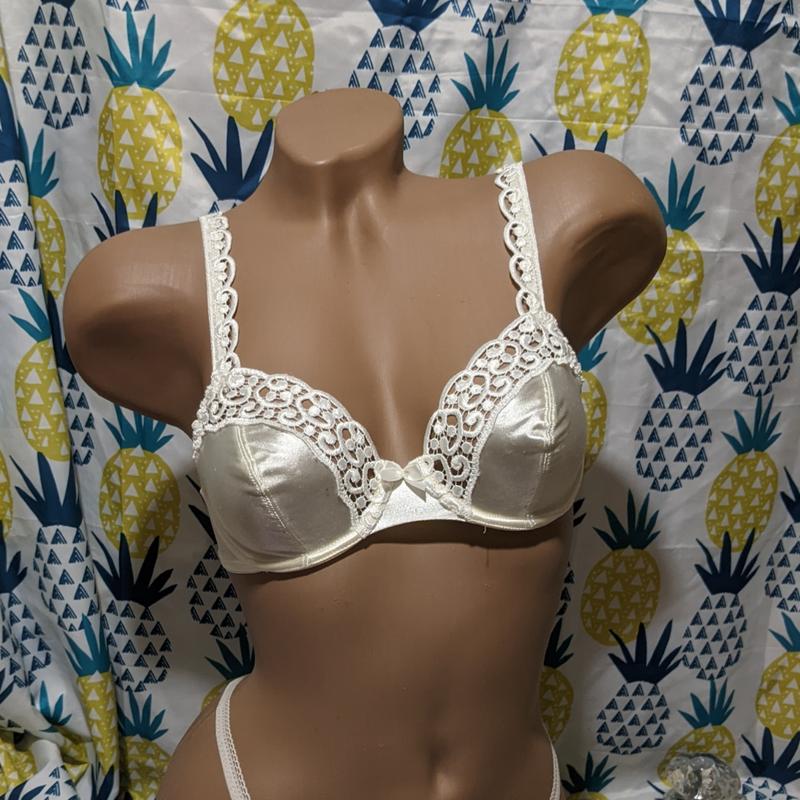 красивий бюстгальтер сливочного кольору з блиском 75-а невелика чашечка на кісточці довжина розкрито 65 -83 чашечка на моєму коліні в об'ємі не менше 14 см по висоті приблизно 13 класична невелика грудь розміром а