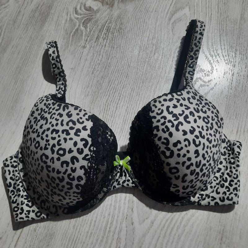 Бюстгальтер леопардовый лифчик лиф пуш-ап Victoria's Secret 34D 75-80D,C, замеры на фото