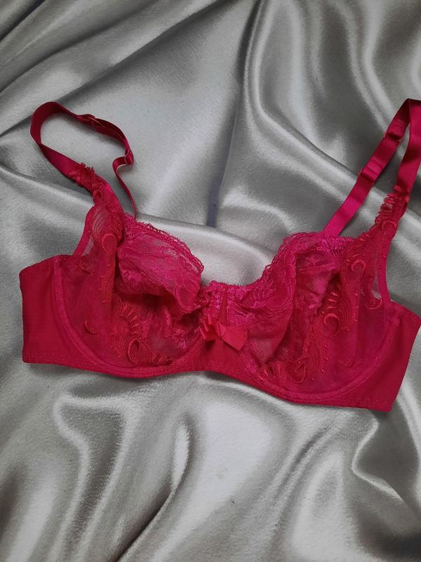 Сетка с вышивкой цвет малиновый Длина бюстика 71-98 Ширина чашки внутри с углублением 23 Высота чашки внутри с углублением 16 Длина косточки по дуге 26 бірка зрізана, орієнтуйтеся по замірами
