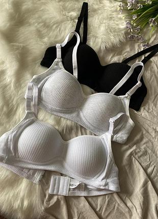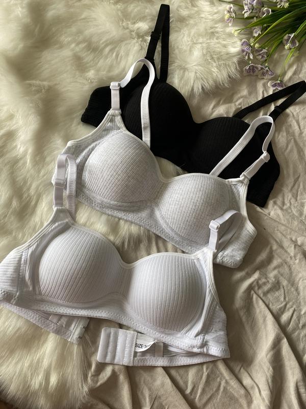 Базовый хлопковый бюстгалтер Размер: 34/75 (по поясу 63 см) 36/80 (по поясу 67,5 см) 38/85 (по поясу 72 см) Бретели съемные, лиф без пуш ап. Застежка на 3 крючка на 3 шага. Цвет: черный, белый, серый меланж.