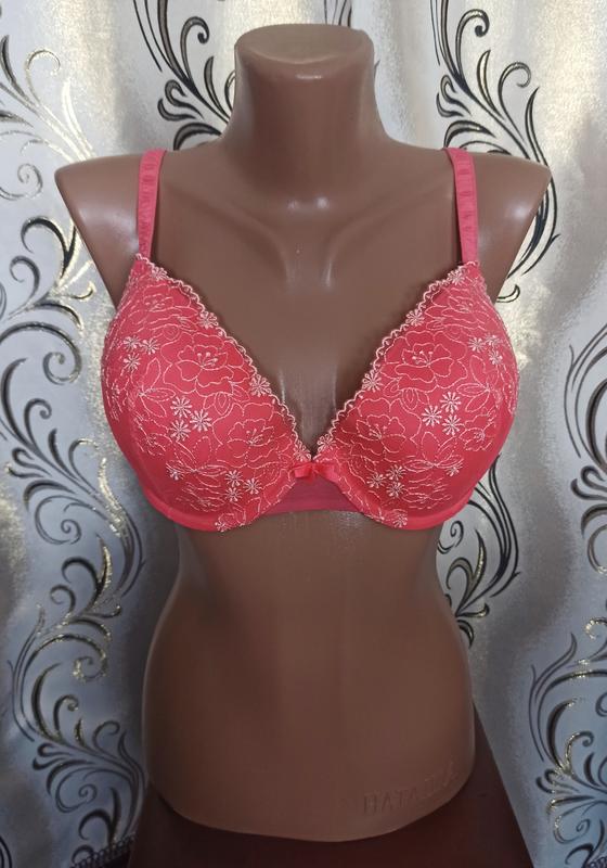 Дуже красивий бюстгальтер marks & spencer Колір - кораловий Чашка на поролоні.Бретелі не знімаються. Розмір - 36d 80d. Застібка - гачки та люверси у два ряди. Склад: 67% поліестер 28% поліамід 5% еластан. Сток. Новий, без паперової бірки.
