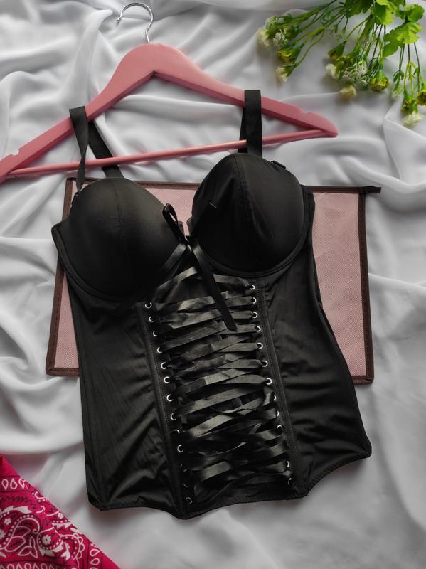 Красивый чёрный лиф корсет с шнуровкой формованные чашки по фигуре бюстгальтер чёрный