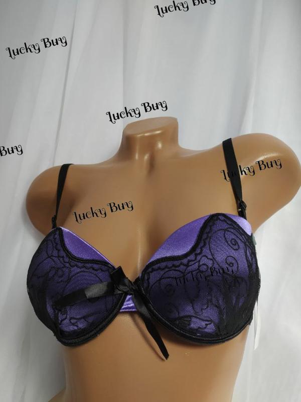 577980 Сиреневый бюстгальтер с черным кружевом. Регулируемые съемные бретели. Застежка крючки, три положения. Цвет сиреневый