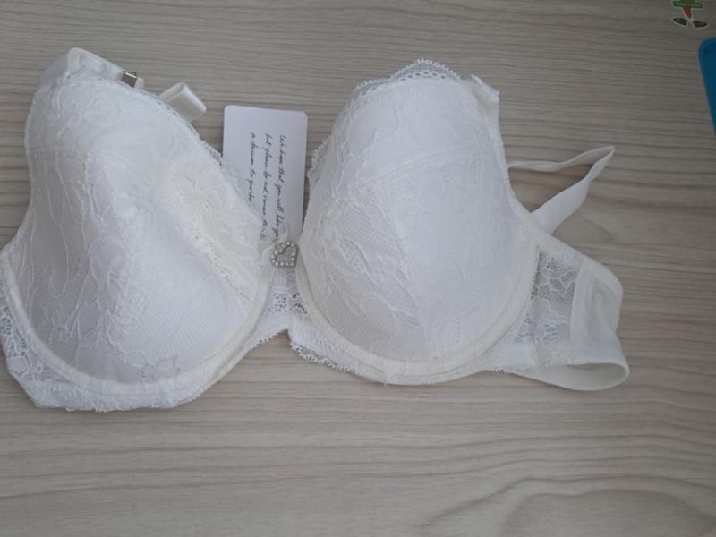 великолепный кружевной бюстик качество высокое цвет молочный на тонком поролоне на косточках отлично держит форму объем в спокойном состоянии71 высота чашки17 глубина 18