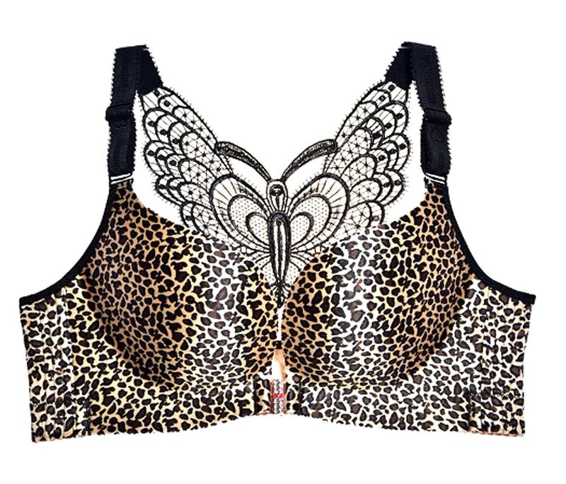 Бюстгальтер 110d-e большой размер для пышной груди леопардовый с бабочкой без косточек за...