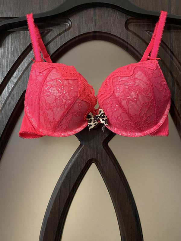 Шикарний, ажурний, бюстгальтер, ярко розового кольору, з леопадовим, бантиком, з низу є супер пушап . Дуже зручний на кожен день, красиво, і сексуально, виглядає на грудях. Брендовоі фірми: Limited Collection. Заміри чашки бюстгальтера: ширина 15 см довжина 13 см. Розмір вказано: 80A/підходе 75A. також . Склад : поліамід 53%, полістер 38%, еластину 9%. В обхваті, в спокійному стані 70 см. тянеться до 95 см.