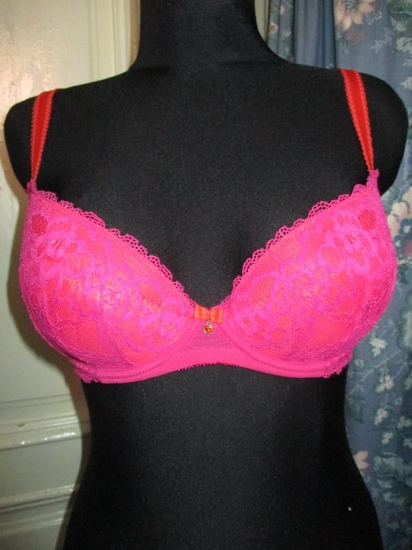 бюстгалтер розового цвета.полиэстер.тонкий поролон с подушками.длина в нерастянутом виде 64.ширина косточки 16.высота 18.длина косточки 24см