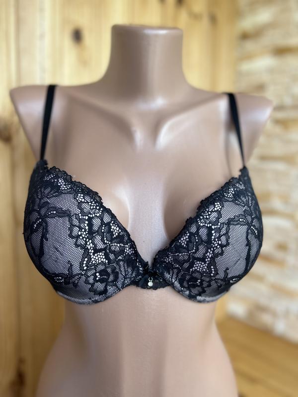 Лиф с пуш-ап эффектом, чёрно-розовый, кружевной, бретельки регулируются