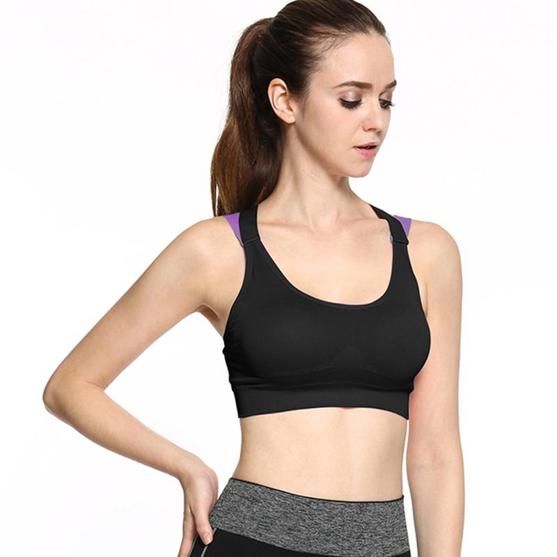 Спортивный бюстгальтер черный с разноцветными бретелями и пуш-ап вкладышем