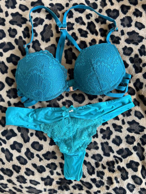 Бюстгальтер пуш-ап в красивом бирюзовом цвете. На чашку А