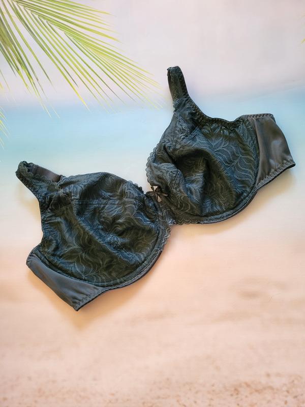 Глибокий темно-зелений кольор. Мереживо на чашці і щільна сіточка по боках. Чашка на кісточці і на тонкій щільній підкладці. Розмір на бірці 42 DD або 95 DD. Новий, сток, без паперової бірки! Зроблю заміри
