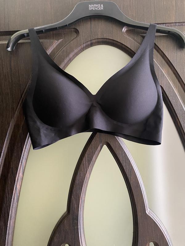 Шикарный, базовый, бесшовный, бюстгальтер, в черном цвете, без косточек. Очень красиво, смотрится на груди. Удобный на каждый день. Брендовые фирмы: H&M. Замеры чашки бюстгальтера: ширина 20 см. длина 17 см. Размер указан: XXL/по факту подходит 80С. Состав: 64% полимид, 36% эластина. В обхвате, в спокойном, состоянии 83 см. тянется до 100 см.
