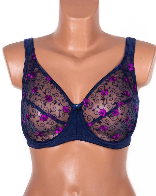 Бюстгальтер кружевной , вышивка , сетка , с мягкой чашкой lanny mode 11245 ,синий с фиолет...