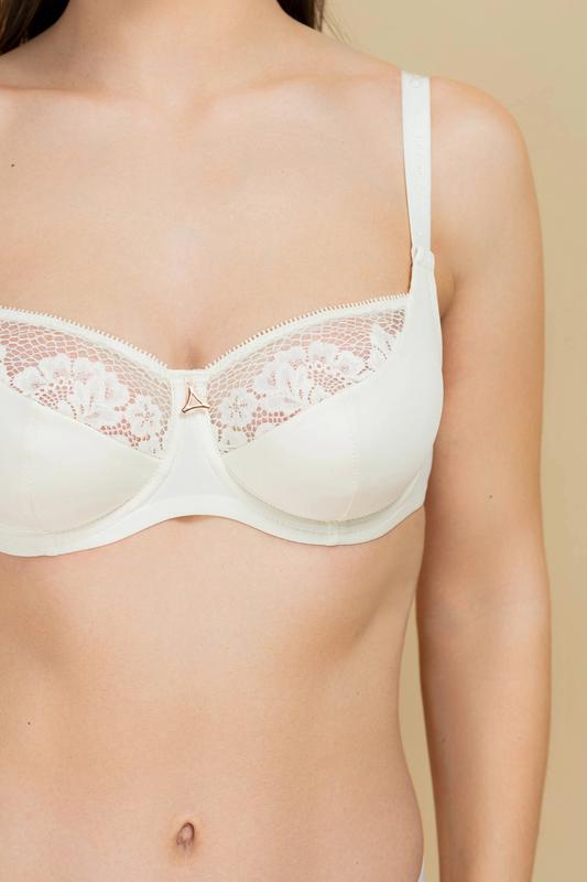 Бюстгальтер soft-мінімайзер із мікрофібри та мережива, з кроєними чашками з тонкого поролону для жінок із "пишними" грудьми: - кроєні чашки округлюють і підтримують груди, не додаючи об'єму; - на каркасах; - бретелі незнімні; - для більшого комфорту пояс у формі маєчки на підкладці зі стягуючої сітки; - широка застібка на 3 гачки і 4 положення; - абсолютний комфорт і підтримка. р.80С проданий р.85С проданий р.90С р.95С р.100С проданий р.80D р.85D р.90D р.95D проданий р.100D проданий