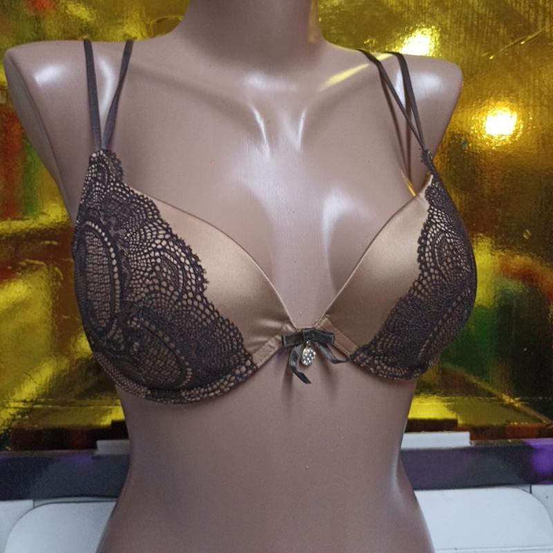 Бюстгальтер пуш-ап атласный с кружевом размер 75 в