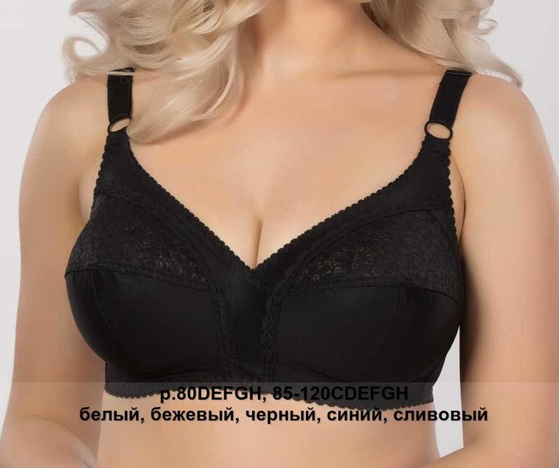 Бюстгальтер с мягкими чашками без каркасов из эластичного, трикотажного и кружевного полотна. Нижние детали чашек дублированы хлопковым полотном. Извечную проблему поиска подходящего лифчика на грудь большого размера позволяет решить эта изящная модель с романтической оборочкой и специальной подкладкой их хлопковой ткани. Идеально прилегая и обладая особой формой чашки, бюстгальтер позволяет придать груди красивую форму и сохранять её весь период ношения. Надежность поддержки гарантируют достаточно широкие бретели и плотная ткань в нижней части, вставки из кружевного полотна не дают ни на секунду забыть о вашей женской натуре. В дизайне сочетаются элементы классического и ретро стиля, что делает лифчик отличным выбором для любой девушки или женщины. Размерный ряд: • 80D 80E 80F80G 80H • 85C 85D 85E 85F 85G 85H • 90C 90D 90E 90F 90G 90H • 95C 95D 95E 95F 95G 95H • 100C 100D 100E 100F 100G 100H • 105C 105D 105E 105F 105G 105H • 110C 110D 110E 110F 110G 110H • 115C 115D 115E 115F 115G 115H • 120C 120D 120E 120F 120G 120H Цветовые решения: белый, бежевый (телесный), черный, синий, сливове вино. Состав: хлопок 28%, полиамид 67%, эластан 5%. В зависимости от размера бюстгальтера количество крючков на застежке и ширина бретельной ленты могут быть разными. Количество крючков: • 80DEF 85CDE 90CD 95C - 2 ряда крючков • 80GH 85FGH 90EFGH 95DEFG 100CDEF 105CDE 110CD 115C - 3 ряда крючков. • 95H 100GH 105FGH 110EFGH 115DEFGH 120CDEFGH - 4 ряда крючков. Ширина бретельной ленты: • 80DE 85CD 90C - 2 см • 80FGH 85EFGH 90DEFGH 95CDEFGH 100CDEFGH 105CDEFGH 110CDEFGH 115CDEFGH 120CDEFGH - 2,5 см.