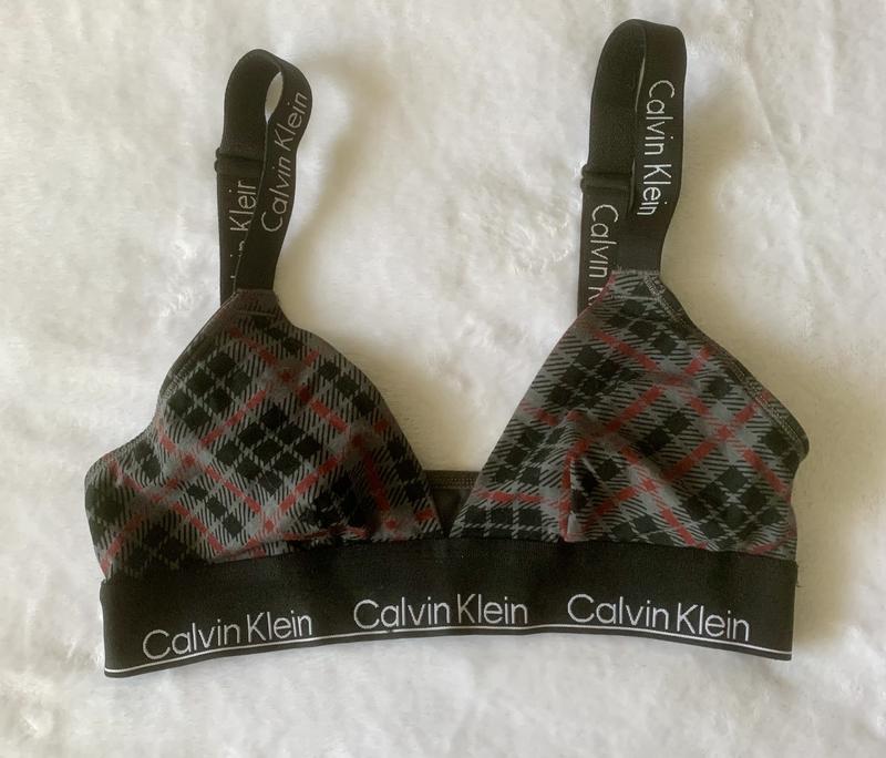 Спортивный бюстгалтер Calvin Klein Размер XS Туга широкая цельная резиновая основа ( 3.5 см), полуобхват под грудью в нерастянутом состоянии 28 см, застежки нет. На небольшую грудь. Чашечки без косточек, хлопковые. Подарок, но на меня малый