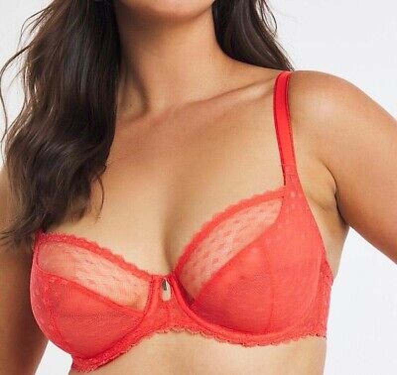 Лифчик, бюстгальтер, балконет, красный, сеточка, прозрачный, косточки