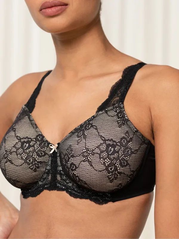 Бюстгальтер-мінімайзер на кісточках Triumph Contouring Sensation W01 оптично зменшує бюст на один розмір. Гнучка кругла підтяжка забезпечує свободу рухів, хорошу підтримку та комфорт. Формує природні круглі груди. Делікатний квітковий мереживний декор надає йому жіночності та елегантності. М'яка опора з 3D дротяної конструкції Елегантне мереживо, квітковий візерунок Зручні широкі бретелі