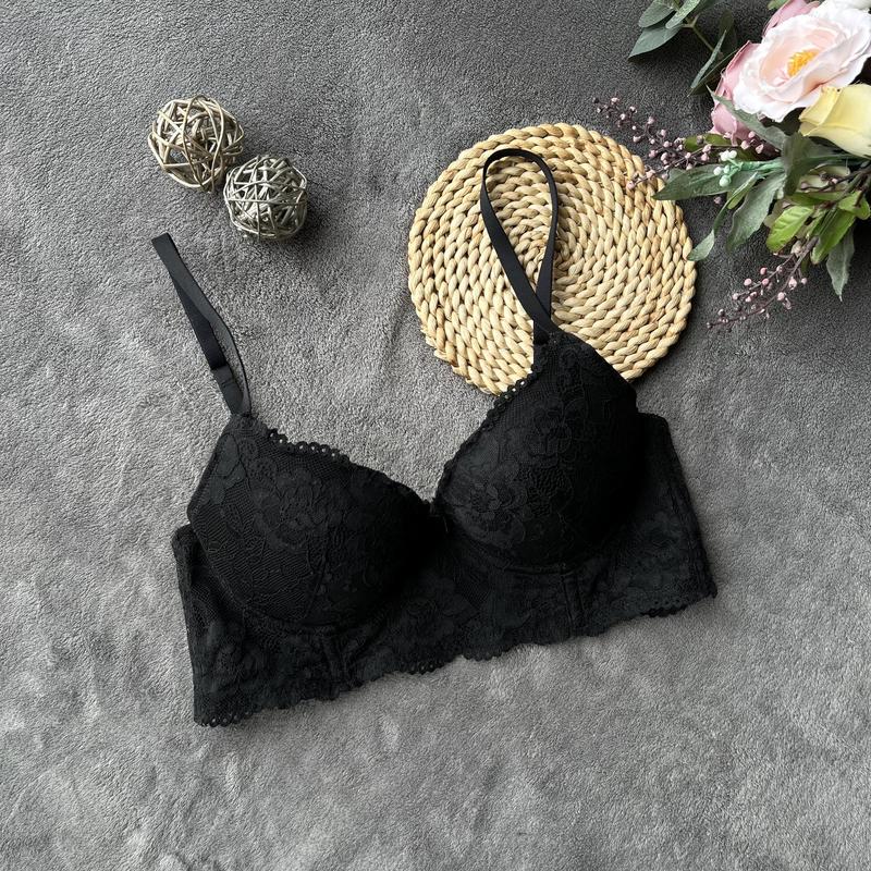 Н&М р. 75В Роскошный широкий бюстгальтер черного цвета, с кружевом, есть пуш ап (1803)