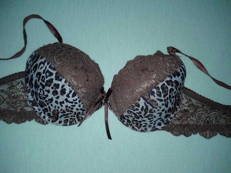Леопардовый бюстгальтер «fnniss» c push-up эффектом (б/у). размер l.