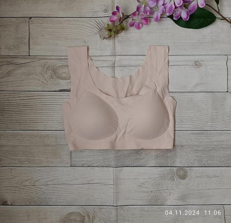 Чашки со съемными вставками, без косточек. Размер L по набору. Подойдет на размер 90 С Полуобхват груди 33 см, тянется до 50 см., длина топа 32 см. состояние идеальное. без нюансов.