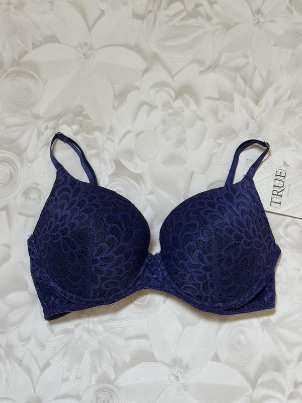 Роскошный бюстгальтер шикарного цвета американского премиум бренда True & Company. Модель True&Co Originals Bezier High Line Push-Up Demi Cup. Бюстик из гладкого кружева кобальтового цвета. Чашечка с пуш ап , мягкая внутренняя часть черного цвета. Бретельки регулируются. Размер 34(75)D. Состояние - новый