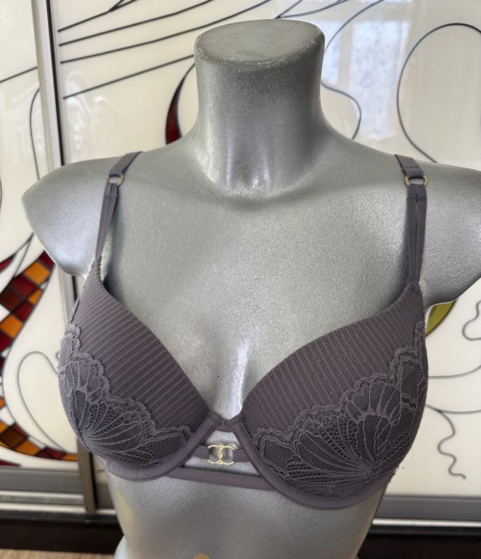 Розкішний, ажурний, базовий, бюстгальтер, в сірому, кольорі. Дуже зручний, на кожен день. Відмінно виглядає, на грудях. Брендовоі фірми: George. Виробник Камбоджи. Заміри чашки бюстгальтера: ширина 18 см. довжина 14 см. Розмір бюстгальтера, вказано: 34С/75С. Складу: 71% нейлон, 16% полістер, 13% еластична . В обхваті, в спокійному, стані 66 см. тягнеться до 95 см.