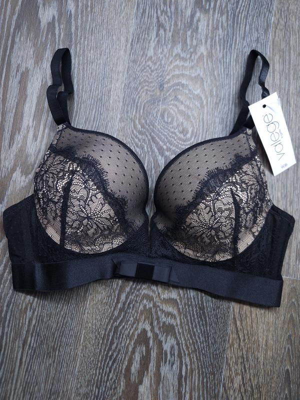 Кружевной бюстгальтер из пуш ап Valege с телесными чашечками, декорирован кружевом и имеет широкую емкую емкую ризинку по низу. Размер 75B